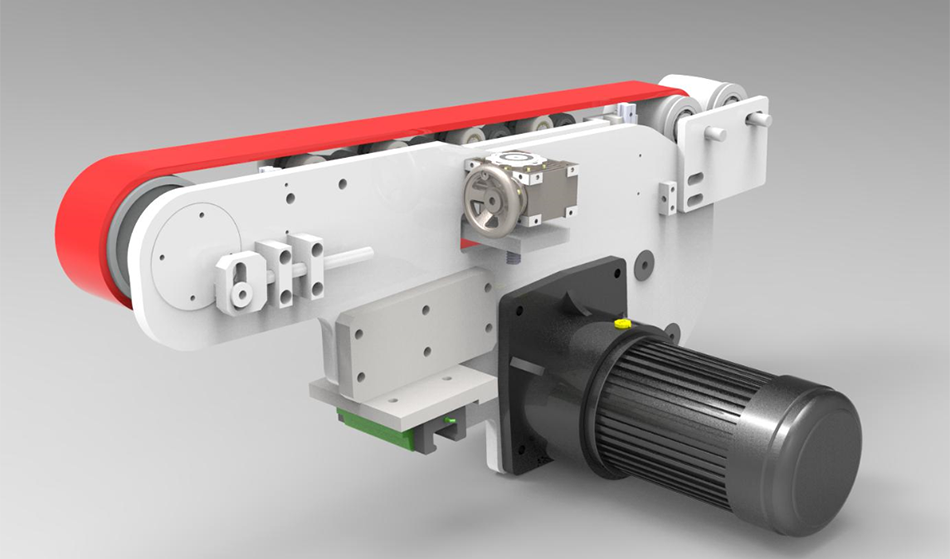 ②下皮带通过减速机控制可单独控制速度差,用以矫正纸板剪刀差