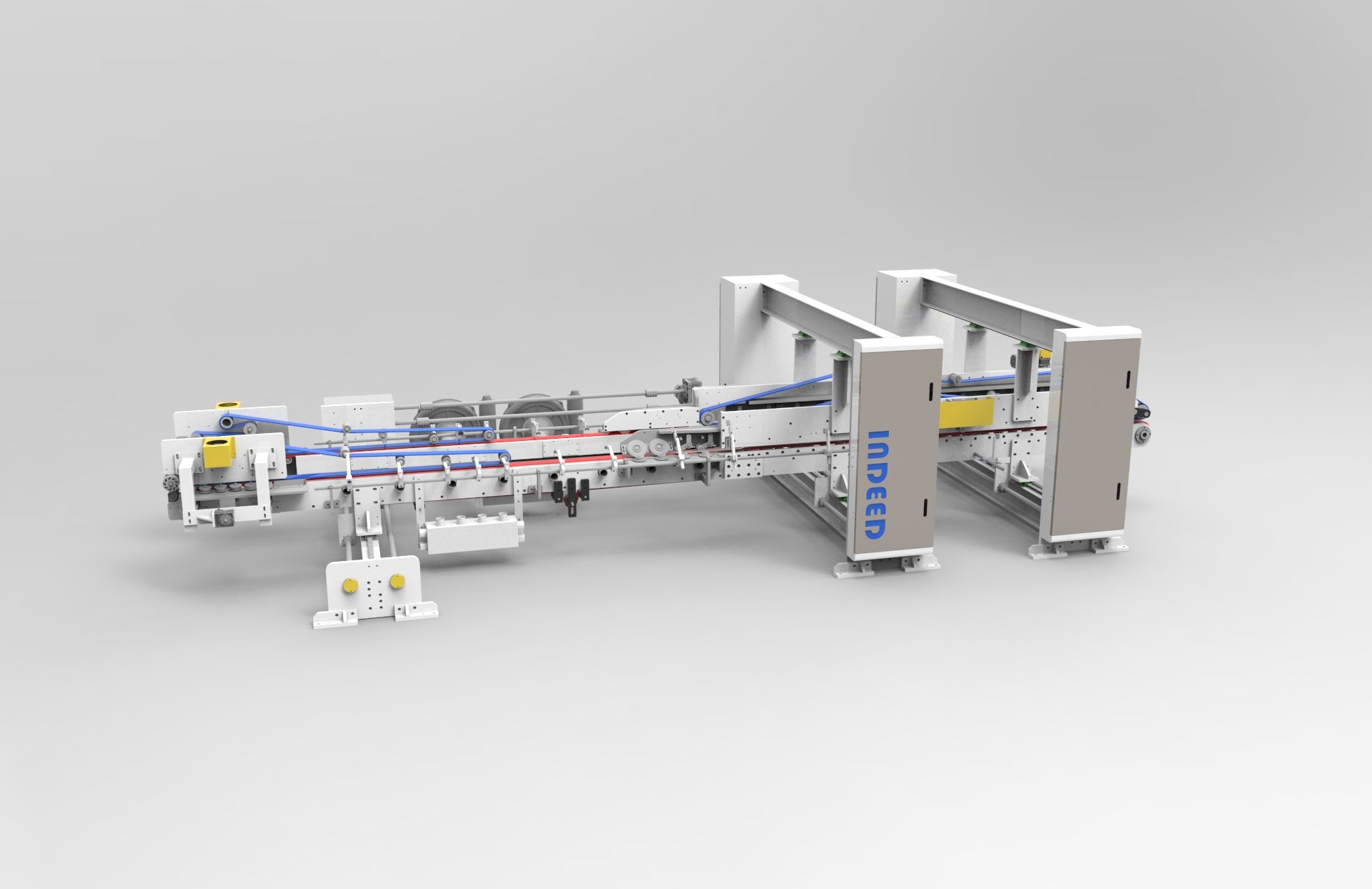 2.上皮带采用独立电机驱动,调节差速,控制纸箱成型效果。